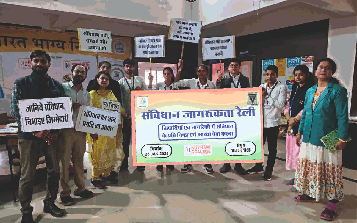 The Samvidhan Jagrukta Rally aimed to raise awareness about constitutional values among students. Enthusiastic participants carried banners and chanted slogans promoting justice, equality, liberty, and fraternity. The rally highlighted the significance of the Indian Constitution in everyday life and reflected the college’s commitment to nation-building through education and civic awareness.