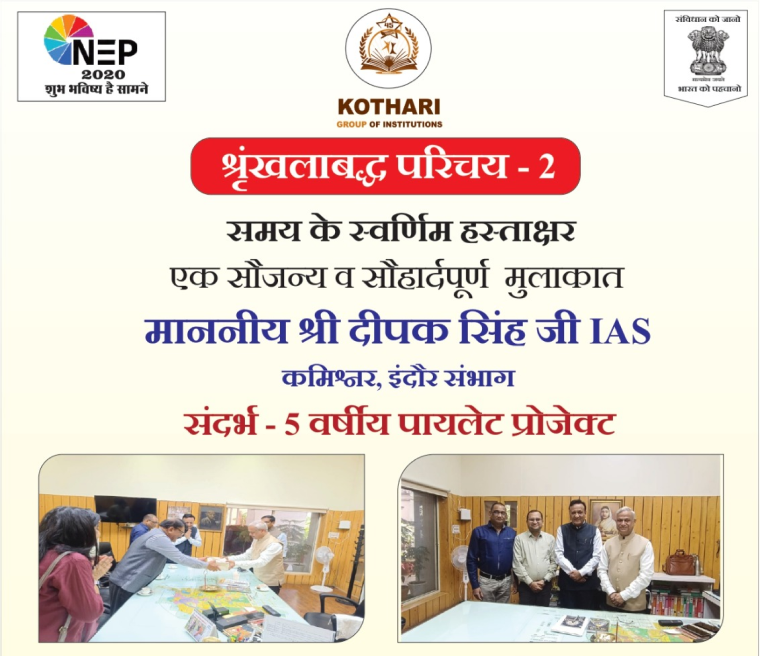 Kothari Group of Institutions (KGI), formed in 1979 under the aegis of CA Gautam Kothari and CMD Mr. Suresh Kothari is a progressive, modern outlook, dynamic organization contributing towards career development of youth and their education for past 40 years constantly in Madhya Pradesh, Chattisgarh and Rajasthan.